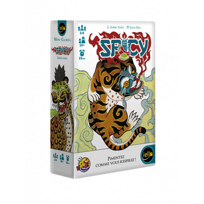 Spicy est un réjouissant jeu de cartes dans lequel de 2 à 5 joueurs tentent d’imposer leur supériorité en dégustant des plats épicés… ou en faisant croire qu’ils le font ! Le bluff est en effet de la partie, et il sera tout à fait possible (voire conseillé) de mentir sur les cartes jouées.