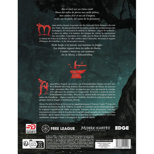 Edge EntertainmentOserez-vous braver les ténèbres qui règnent sur l’immensité des tunnels de l’ancien royaume nain ? Moria, par-delà les Portes de Durin est un suppl...
