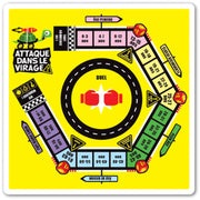 Dans "Attaque dans le Virage", connaissance, réflexion, imagination, intuition et volonté seront vos moteurs pour progresser. Ce jeu unique vous met au défi d’être acteur de votre réussite en avançant votre pion grâce à vos bonnes réponses et actions réussies, tout en laissant une part au hasard.