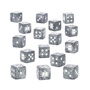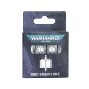 Ce set de 16 dés aux arêtes carrées sur le thème des Grey Knights s'utilise dans les parties de Warhammer 40,000. Ils sont moulés en plastique acrylique gris nacré, avec des marquages blancs, et mesurent 16mm de côté. Les faces 1 à 5 arborent des