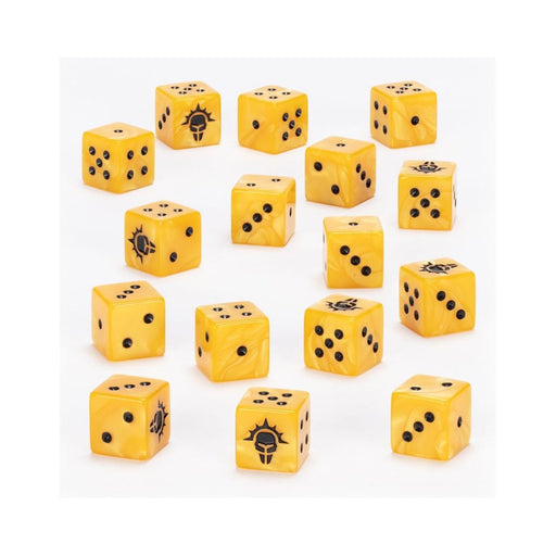 Games Workshopn set de 16 dés sur le thème des Chevaliers Impériaux pour Warhammer 40,000. Moulés en plastique acrylique jaune nacré, avec des marquages noirs. M...