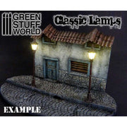 Lampadaires classiques faite de plastique dur noir entièrement assemblé avec fil en plastique et de la résistance pour Plug and Play utilisation. Vous pouvez connecter, à une source d'alimentation entre 3V à 18V (3V lumière éteinte, 12V lumière intense). Ces lumieères seront spécialement fière allure avec 9-12 Volts.