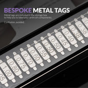 ÉTIQUETTES MÉTALLIQUES SUR MESURE :  Les étiquettes métalliques incluses vous permettent d'étiqueter et d'organiser les pièces de votre aérographe pour une identification facile. Dites adieu à la confusion et gardez votre espace de travail bien rangé.