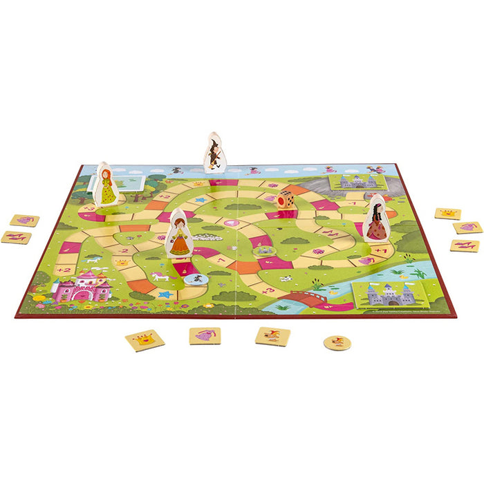 Pour cela, à chaque lancer de dé, à toi de choisir le meilleur chemin pour récupérer au plus vite la tenue complète de princesse : la robe, les chaussures et la couronne.